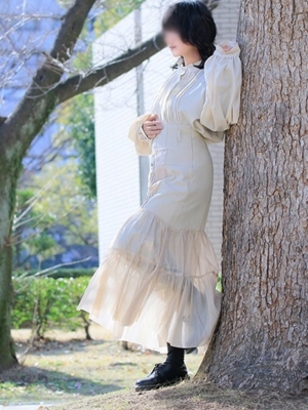 艶のある黒髪に、無駄のないスレンダーなスタイルが映え、落ち着いた大人の魅力を感じさせます。
